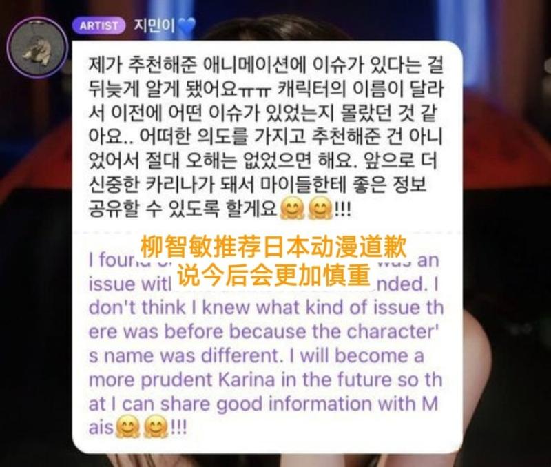 對于我司藝人Karina的帖子引發爭議一事,我們深表歉意。