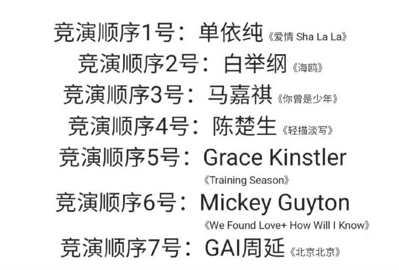 雖然但是,原本本期歌手登場時順序如下:
