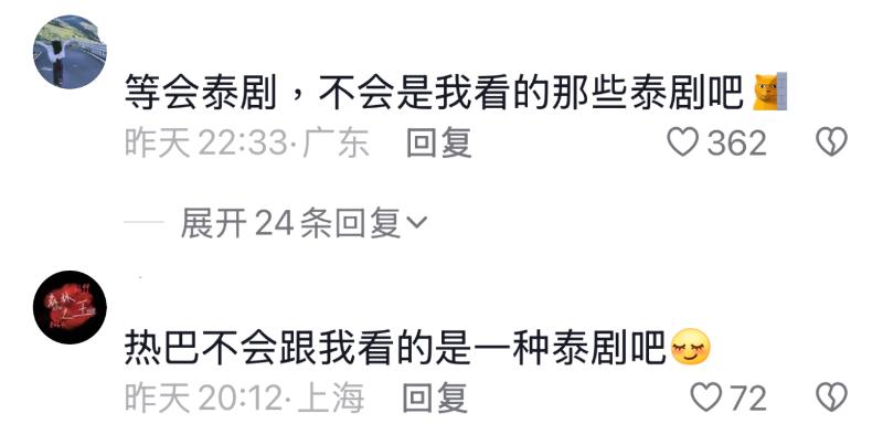 還有部分網友憑著熱巴的腔調,推測她看的很可能是泰腐劇🤣