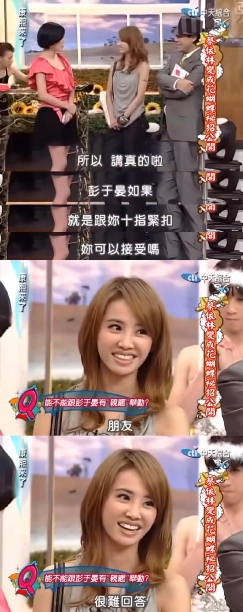 09年4月的《康熙來了》,小S和蔡康永提到彭于晏,蔡依林也沒有否認這段绯聞。