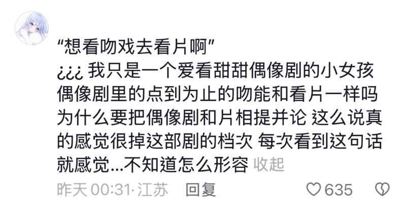 (⊙o⊙)…到底哪方面是不實?哪方面是惡意揣測?網友討論的不是為什麼全都借位嗎?這裡很難怪網友的原因是,原著中的女主就是個“接吻狂魔”,有很多吻戲情節。但在劇中,吻戲場景變成了借位!