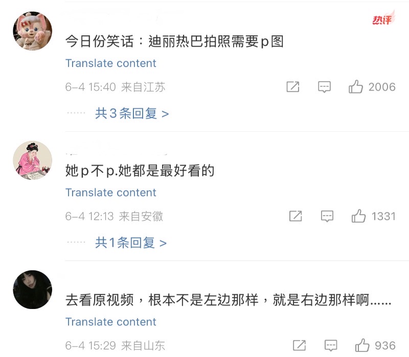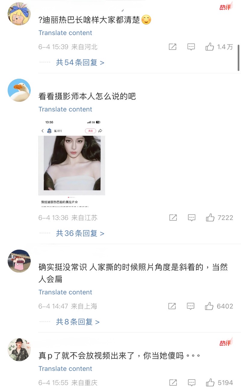 既然有質疑,那自然也會有回應,來看看評論區,一面倒認為懷疑熱巴P圖的,真的會讓人很無語啊👇