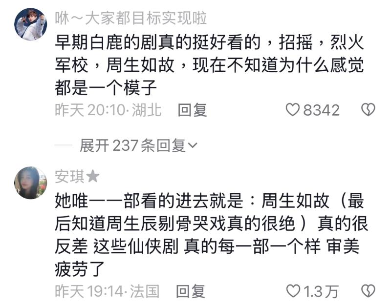 先來看看網友們的留言,大多數認為劇情老套、尤其認為白鹿在同類型電視劇的作品太多,已經覺得疲勞👇