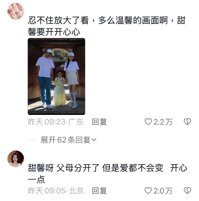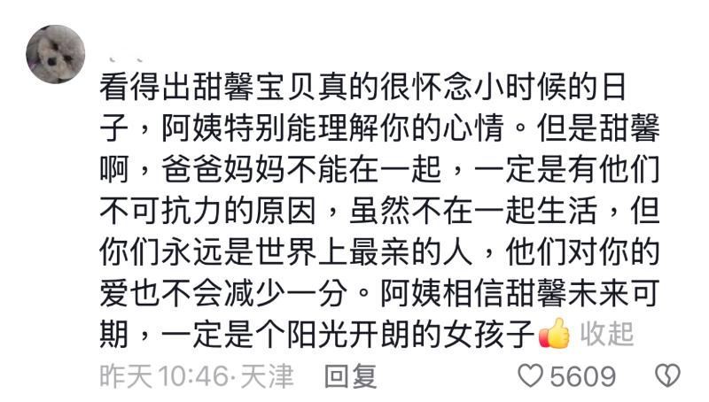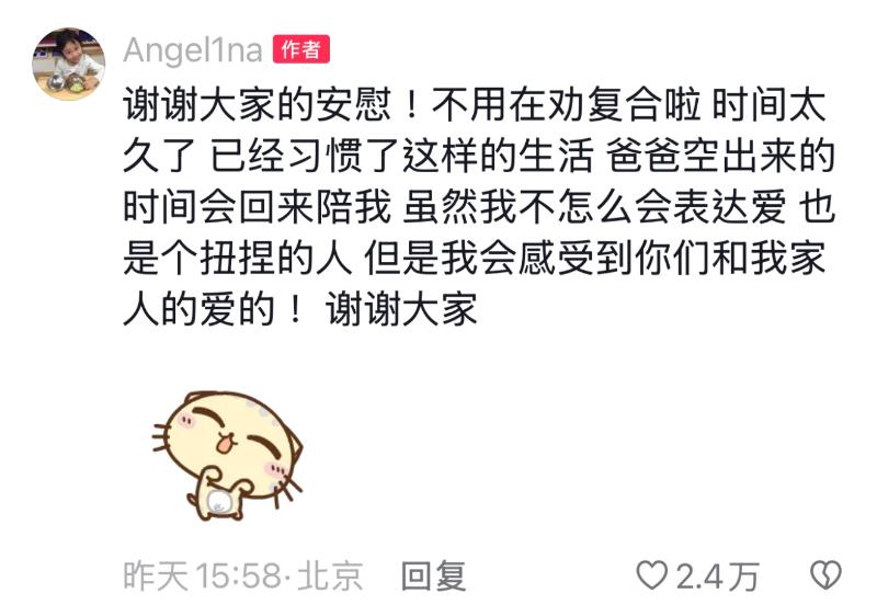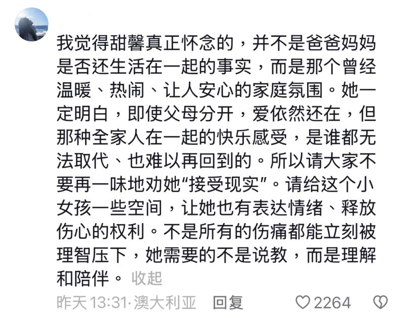評論區不少網友留言,反問這是希望爸爸媽媽復合的意思嗎?👇