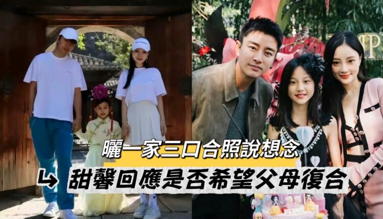對於越來越多傳聞表示兩人將復合,甜馨近日在社交平台,罕見的曬一家三口合影,並配文「想念變成空氣在歎息」👇