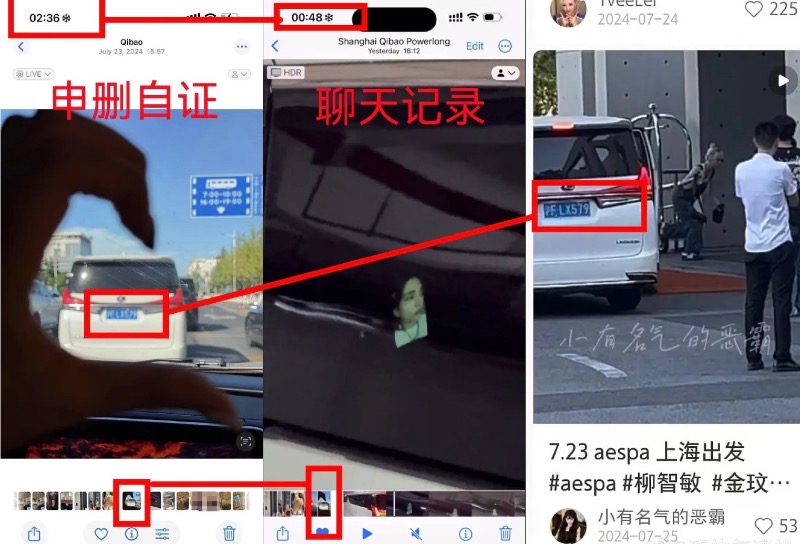 Karina方則表示,當時Karina坐的位子,和拍攝者公開的不符合👇
