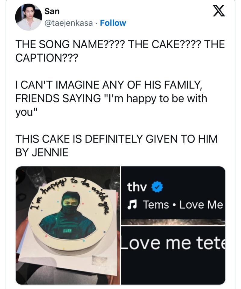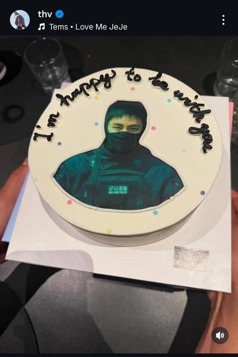 另外的證據,就是金泰亨曬出的蛋糕,上面寫的字是「I’m happy to be with you」