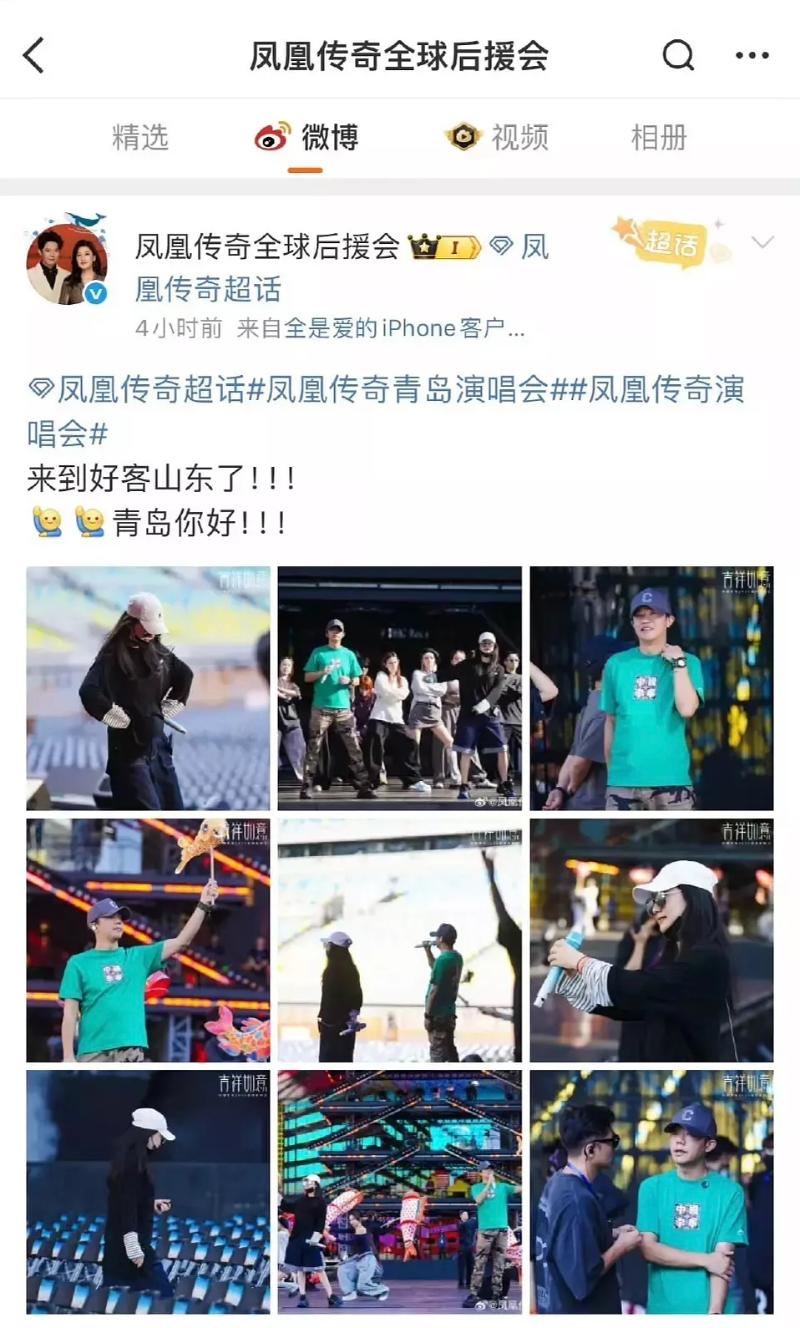 到底怎麼一回事呢?原來是鳳凰傳奇即將到青島辦演唱會,後援會第一時間發了綵排照預熱👇