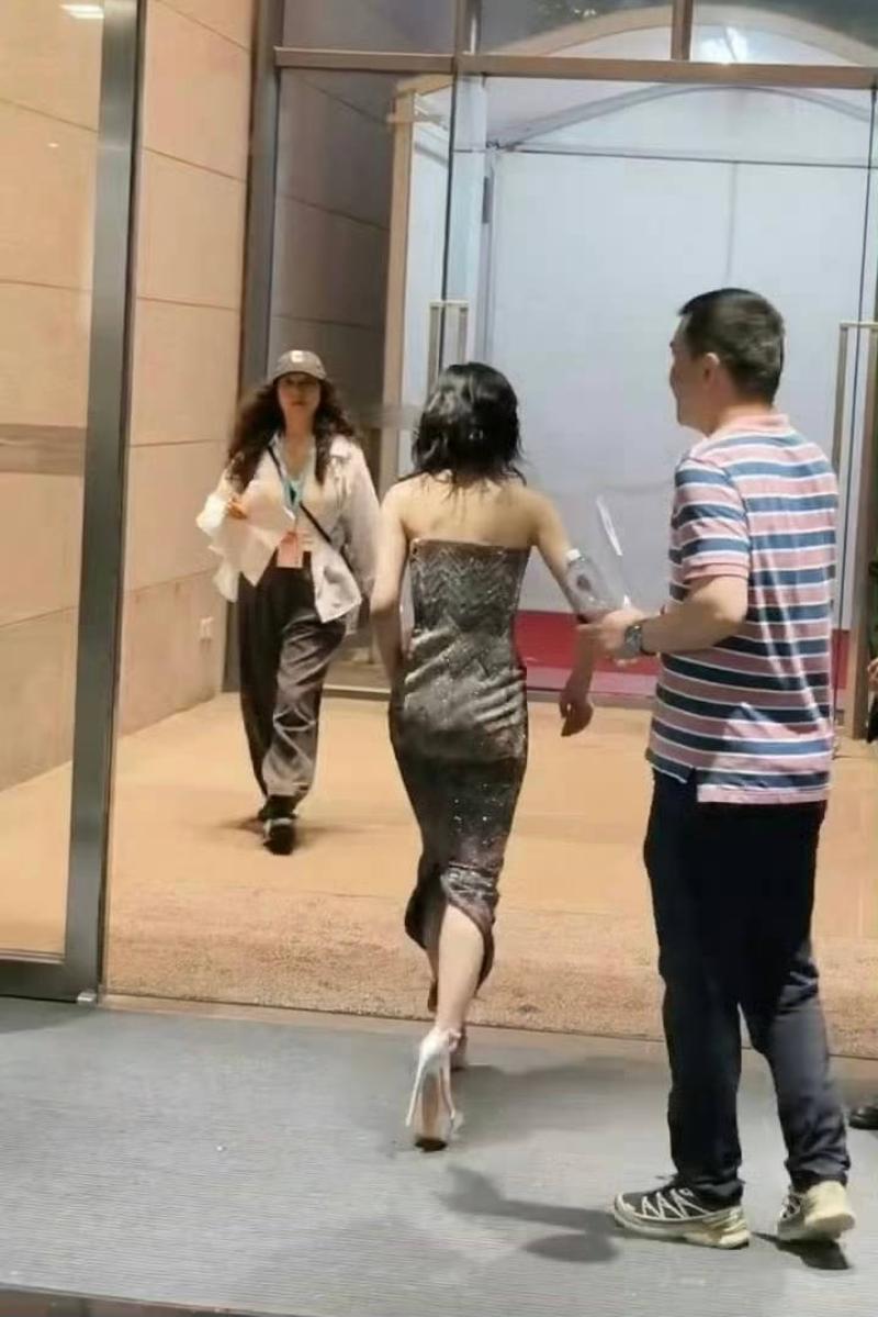 只見她穿著剪綵河神的晚禮服,落落大方的走在紅毯上👇