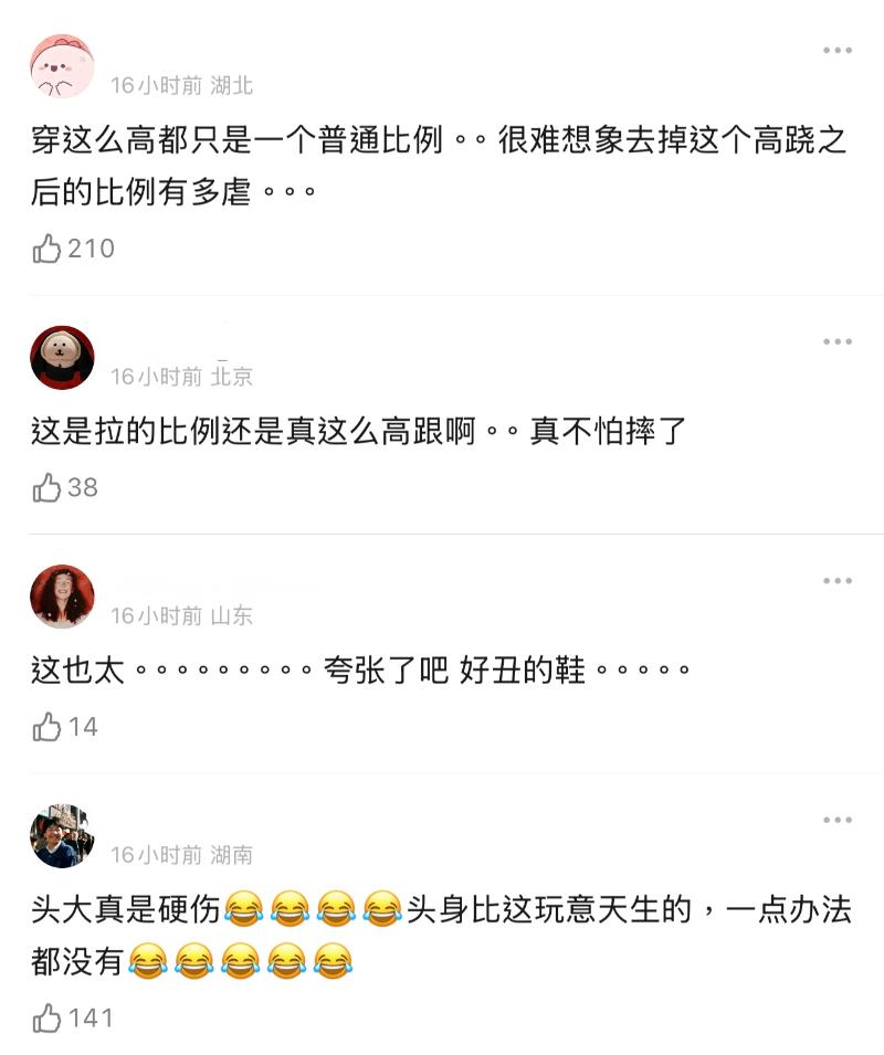 只不過穿了這麼高的鞋子,卻被嘲愛美不要命,還有的說讓她整體比例看起來更虐,顯得頭更大了~