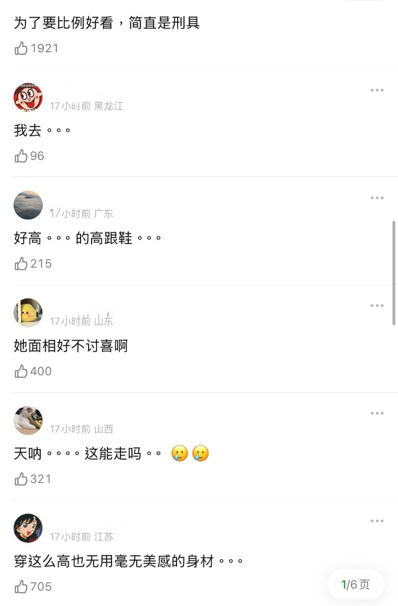 只不過穿了這麼高的鞋子,卻被嘲愛美不要命,還有的說讓她整體比例看起來更虐,顯得頭更大了~
