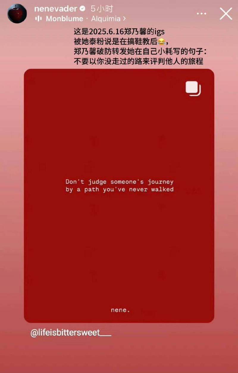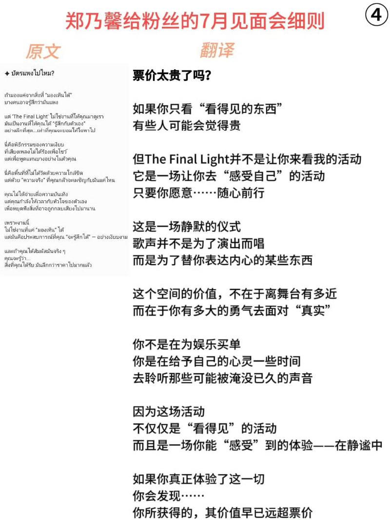 到底這場見面會的反應如何?據悉,就連泰國粉絲在看了細則後,也在群裡說這是在什麼邪教嗎?於是鄭乃馨用她的小號回應,表示:「不要以你沒走過的路,來評判他人的旅程!」