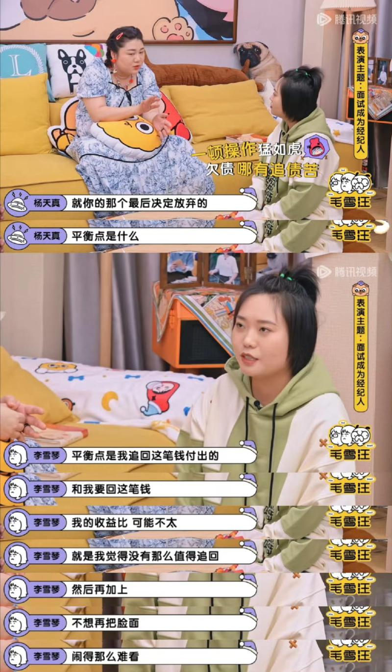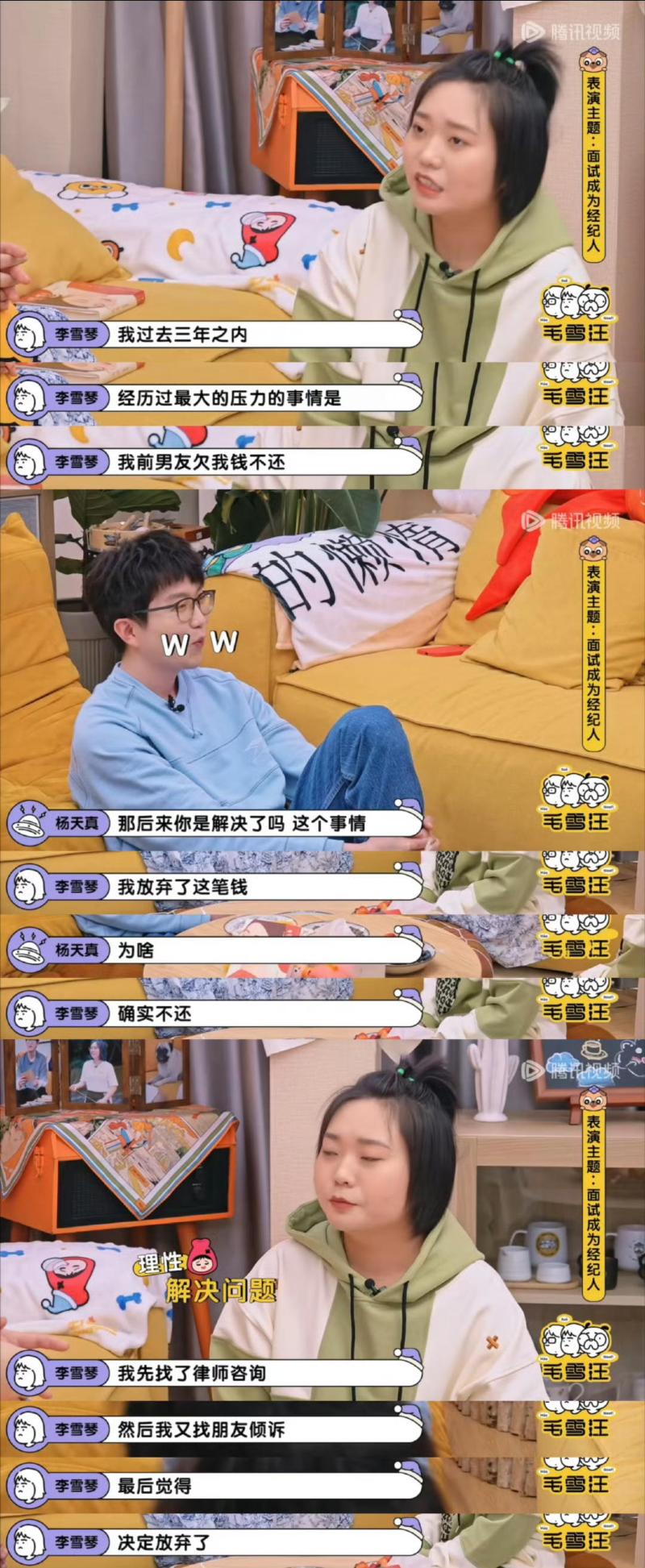 網友隨後也考古了一則2023年時的採訪,當時在《毛雪汪》節目中,李雪琴自爆曾被前男友欠錢不還👇