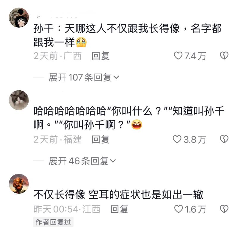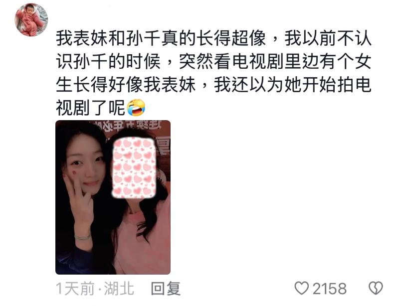 評論區也有一個網友分享了自己的表妹,長得很像孫千,確實也很神似啊!
