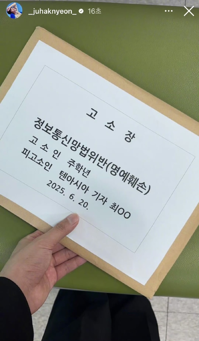 隨後,周鶴年在Ins上傳刑事控告書,控告「TenAsia記者 崔某某」對其的名譽毀損!