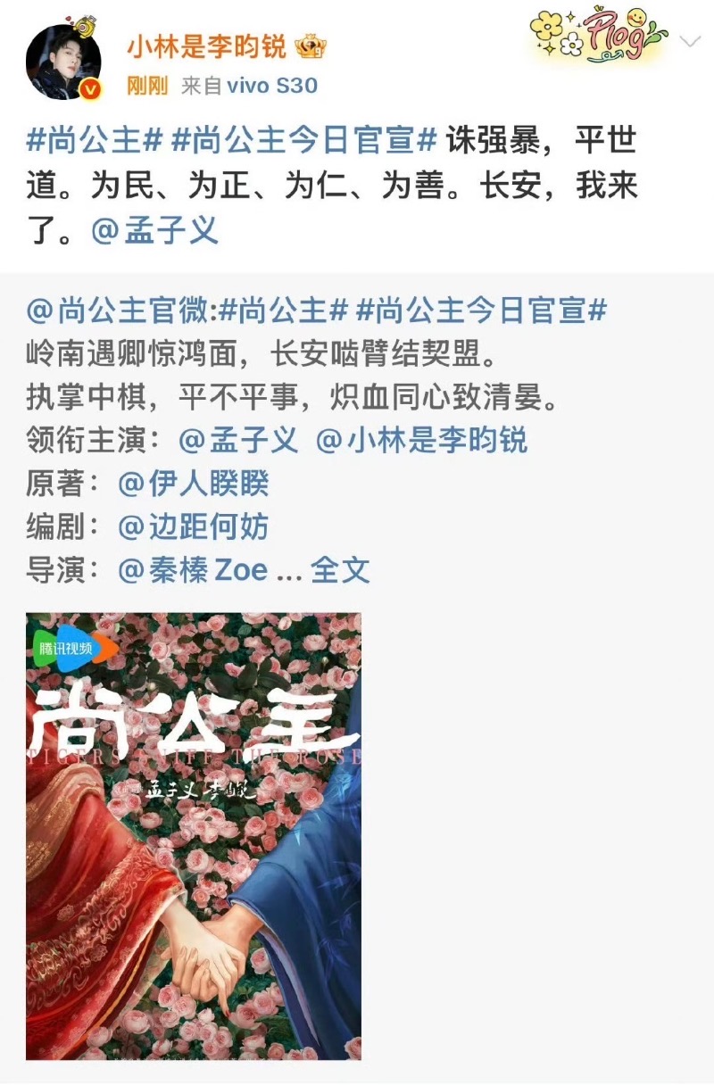 熱搜爆了!李昀銳孟子義官宣三搭《尚公主》秒撒糖!CP粉霸氣打臉唯粉!