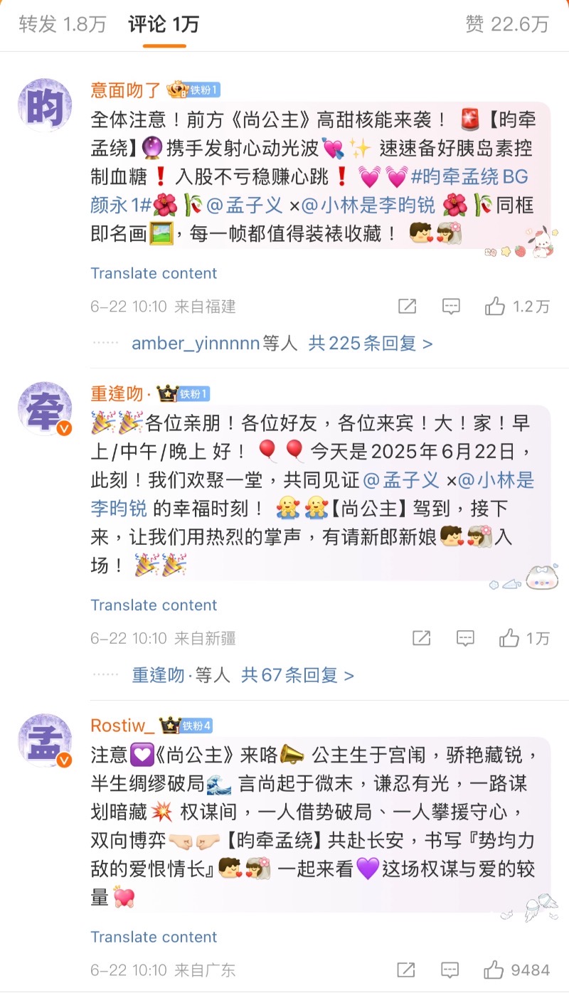 在官宣之後,「昀牽夢繞」CP粉也在評論區控評,展現了強大的支持力量,不知道的還以為孟子義和李昀銳官宣了吶!不管是在官博評論區👇