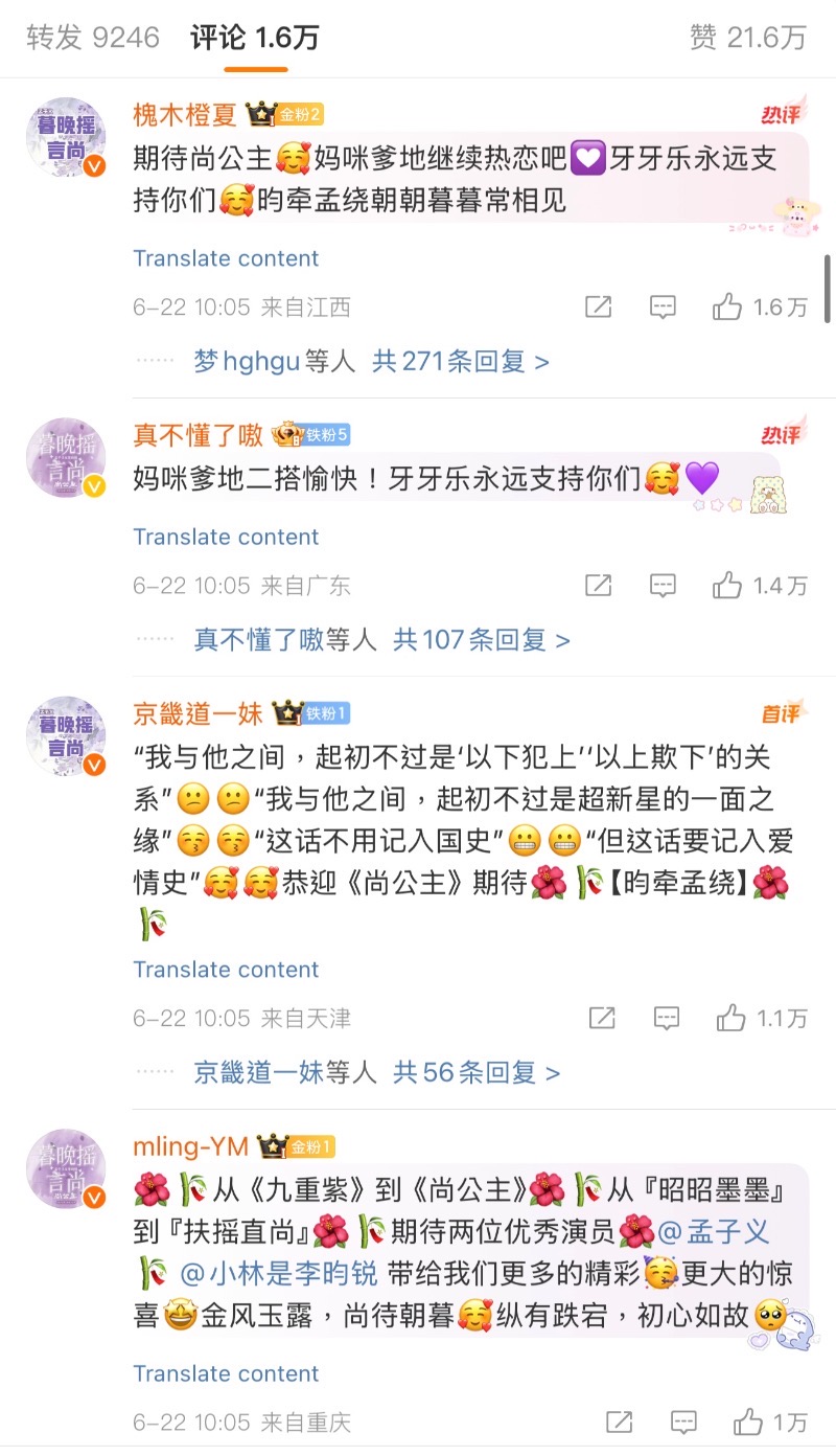 故事主線聚焦公主暮晚搖與書生言尚的嶺南初遇、朝堂博弈及雙向救贖。「昀牽孟繞」CP如今已生長為「扶搖直尚」啦!期待期待!