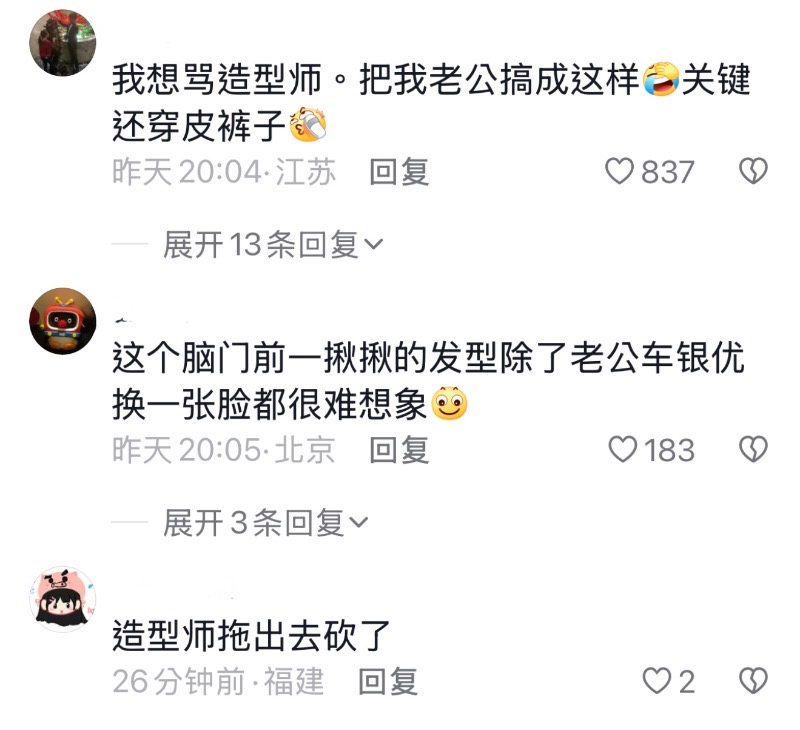 網友熱評紛紛覺得,這髮型真的一油毀全部!搞笑要求把車銀優撕拉片黏回去👇