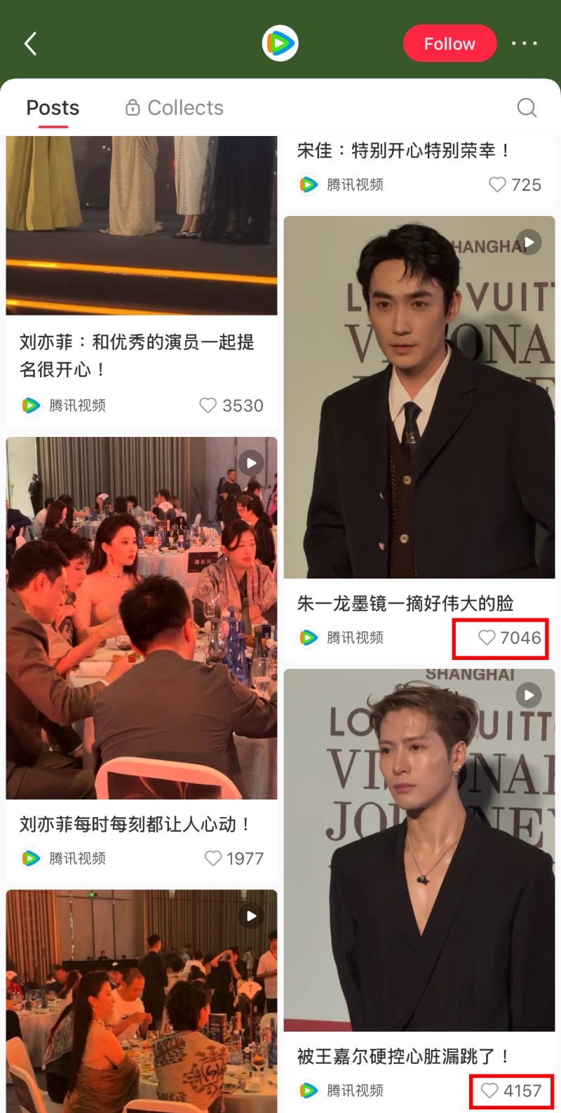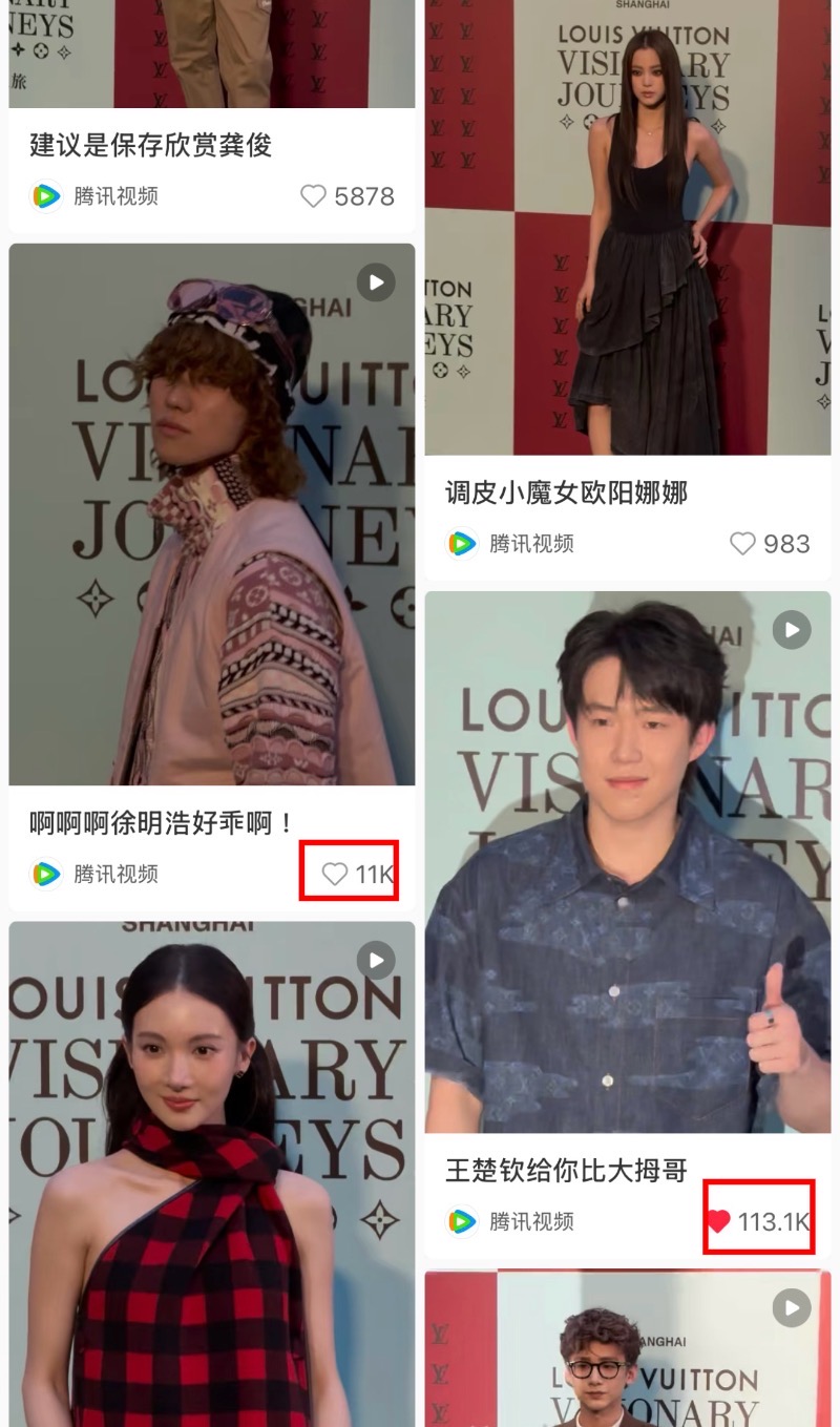 此外,在發佈了活動各個藝人現場視頻的騰訊,王楚欽視頻的點讚率也嚇死人的高,突破10萬!
