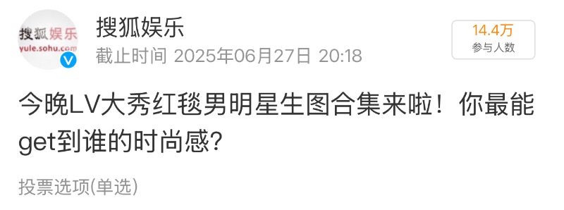 有媒體就以當晚出席男藝人的生圖出圈度做了投票,短短一晚上突破十萬網友參與👇