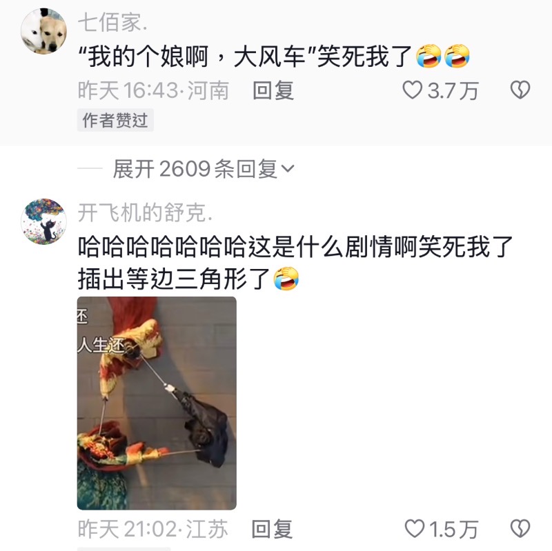 圍觀的觀眾都忍不住吐槽:「大風車!」