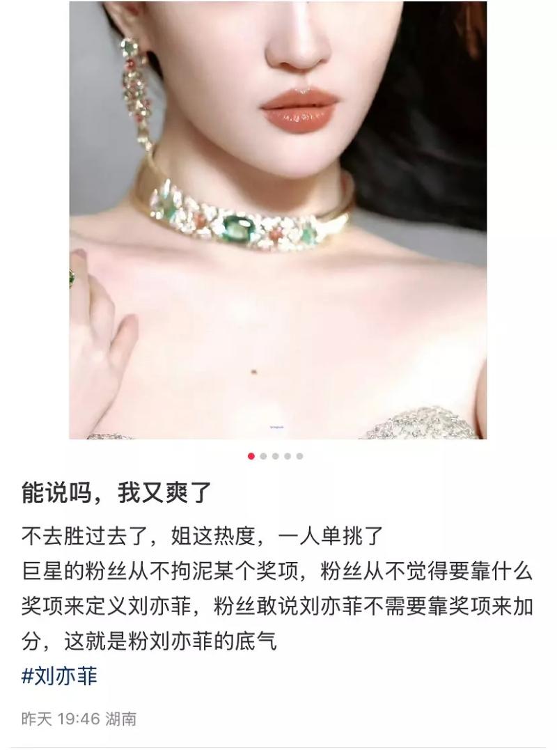 在確認劉亦菲不去之後,部分粉絲開始刷起大女主人設,表示沒得獎就不去,鐵骨錚錚大女人👇
