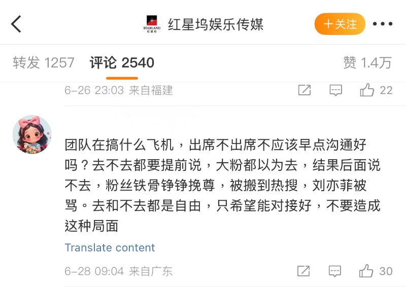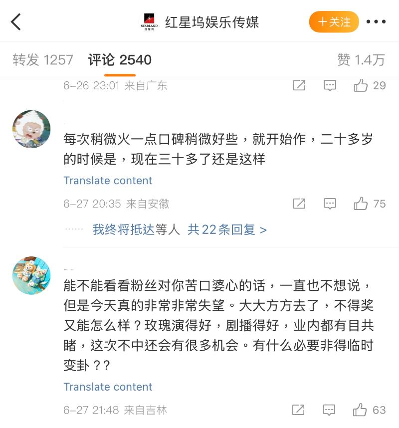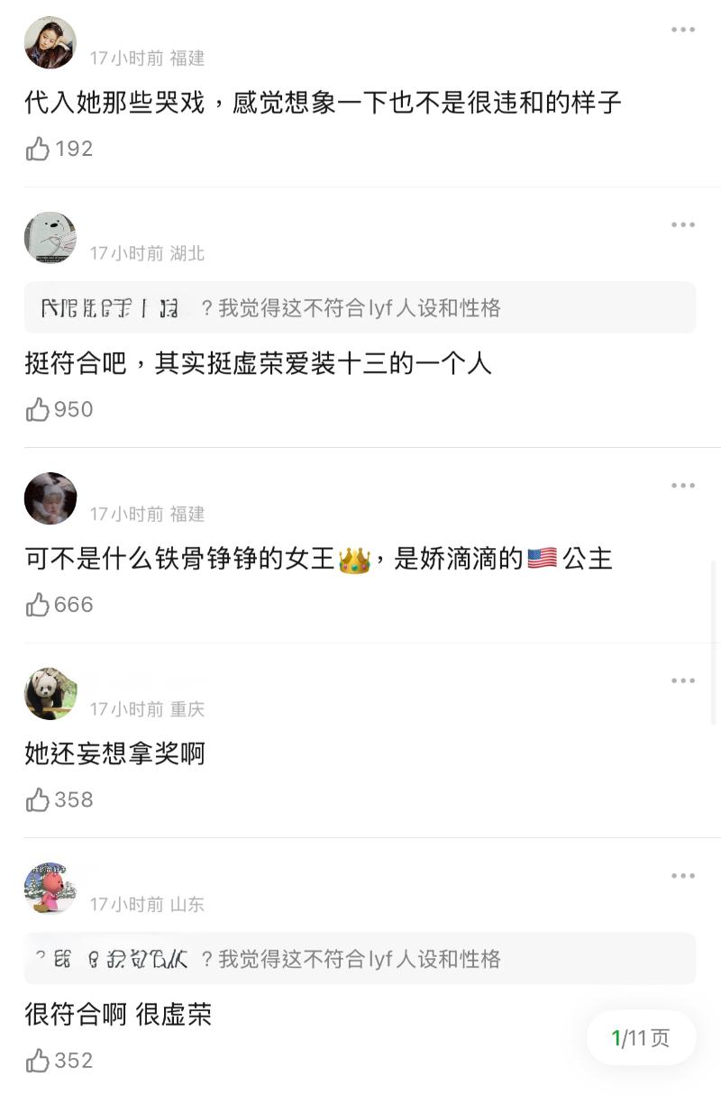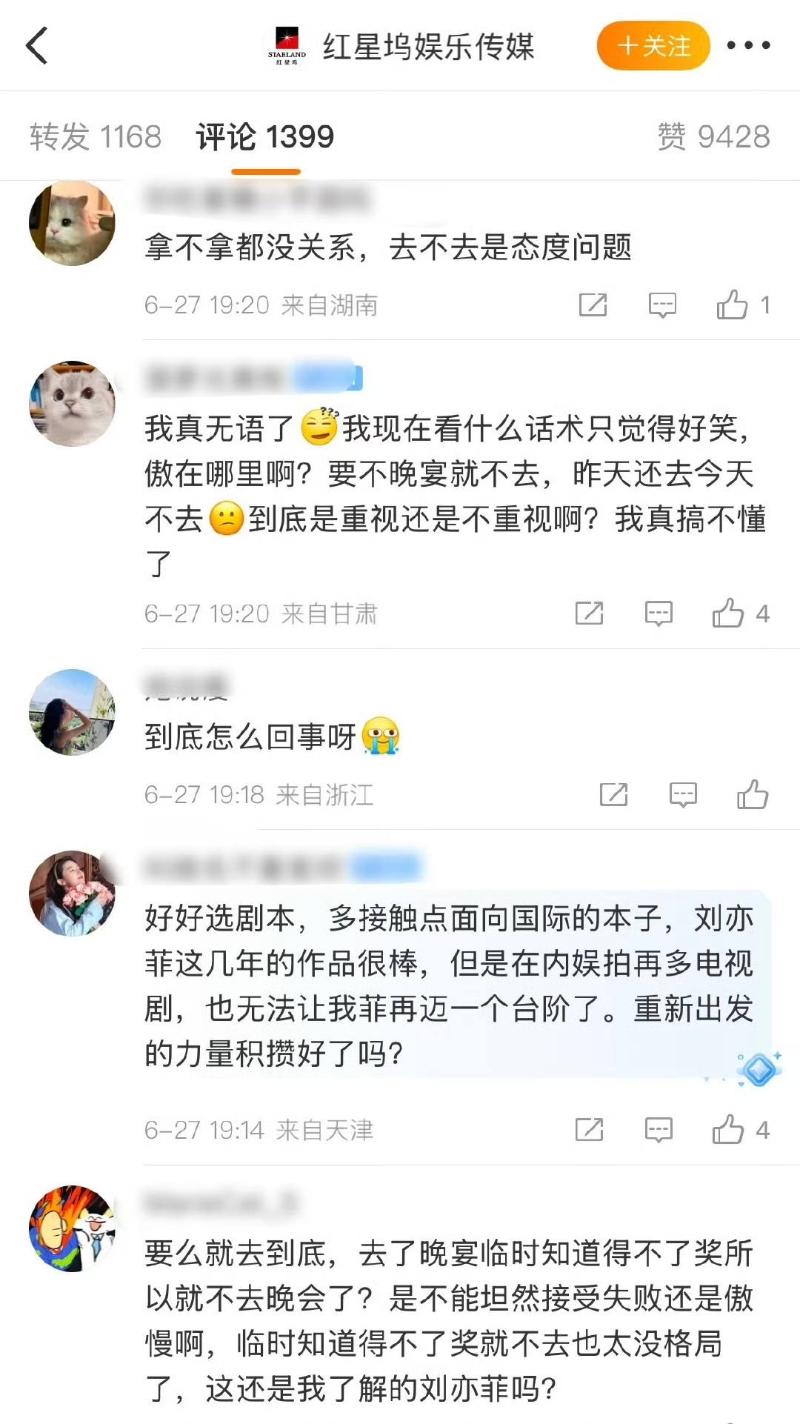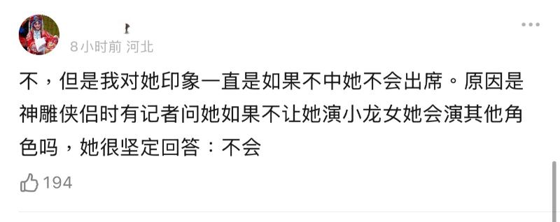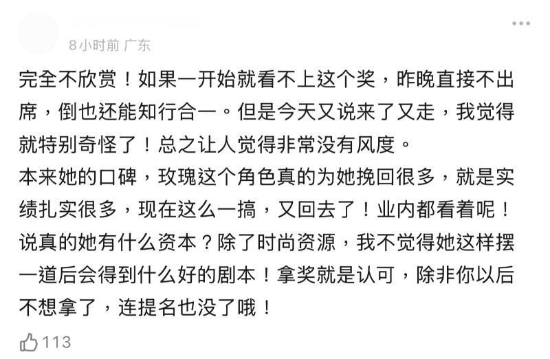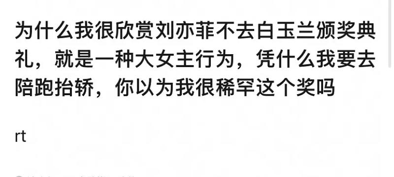 在確認劉亦菲不去之後,部分粉絲開始刷起大女主人設,表示沒得獎就不去,鐵骨錚錚大女人👇