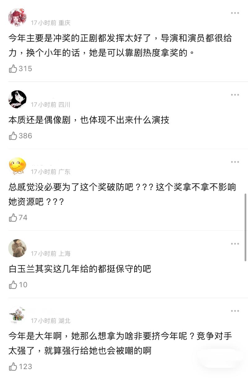 甚至在《白玉蘭》前的“四大前哨獎”全部出席,也全部拿了,本人也每次都發微博,看得出十分在意這次白玉蘭提名👇