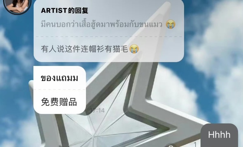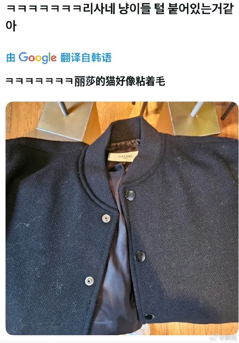 最後,有不少粉絲發現LISA的二手衣物上,居然佔有貓毛,其中一位粉絲發泡泡詢問LISA,得到的回應是「免費贈品」