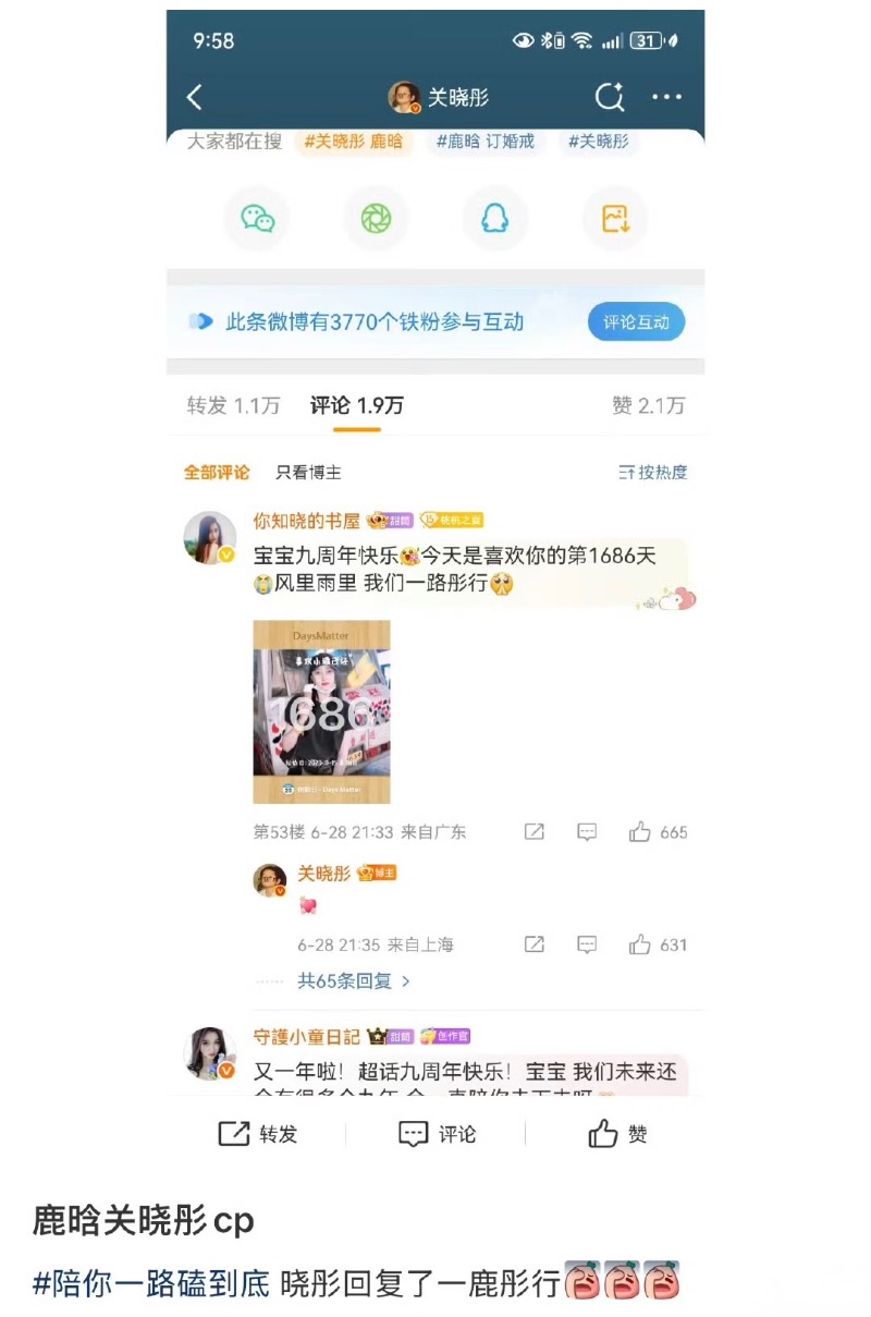 另外,關曉彤在微博評論區居然翻牌了CP粉的留言,而且還是用了「一鹿彤行」的諧音詞的「一路彤行」,讓人覺得很困惑!