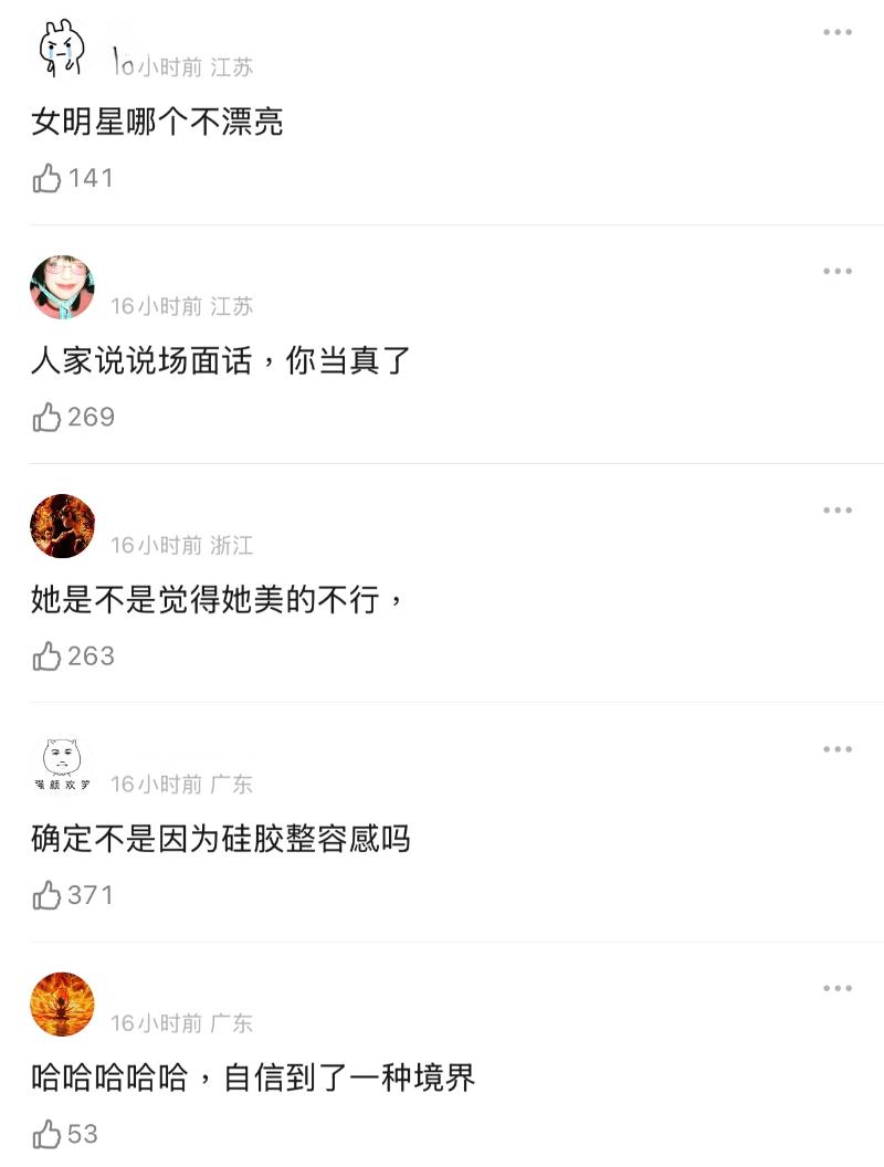 不過這番言論卻被網友發帖質疑,認為她是不是把別人的“場面話”當真了?也是不是對自己的美貌太過於自信了?