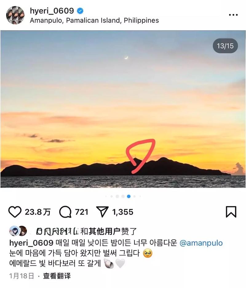 而之前李惠利去菲律賓旅行,現在網友扒出宇泰也曬過同一片海👇