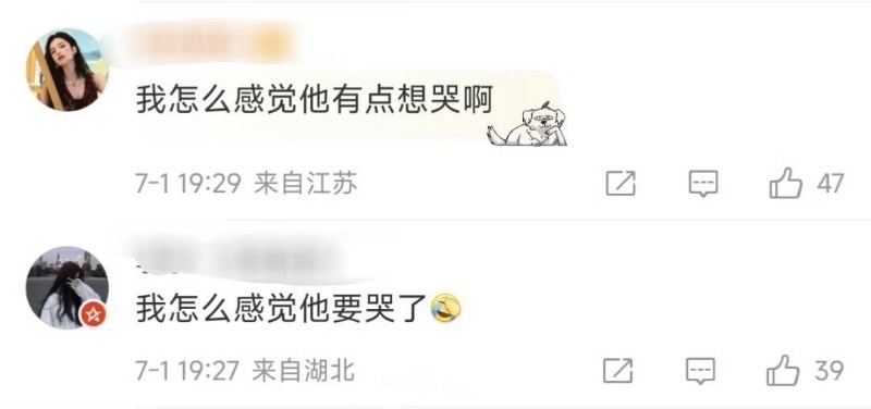 也有網友認為胡一天看起來快要哭了👇