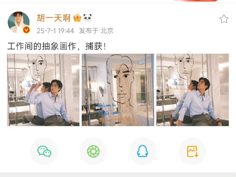 隨著「胡一天 退休了」上了熱搜第一,胡一天發文曬出了自己的畫作,提到了是「工作間的抽象畫作」,疑似回應自己有在工作,只是在搞抽象回應罷了!