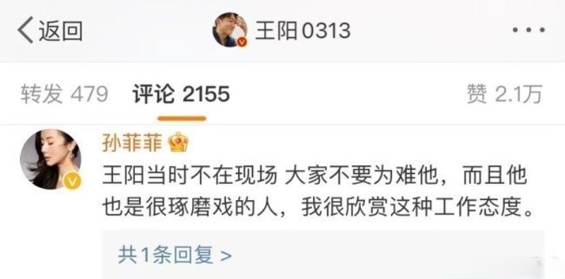 而事情的當事人孫菲菲,也在他的微博評論澄清👇