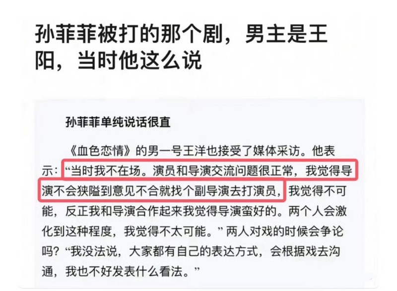她強調王陽雖然當時不在現場,但實際情況他是知道的。孫菲菲表示在自己幫他澄清之後,才看到了王陽當年的訪問,直接被震驚,感覺被背刺了!