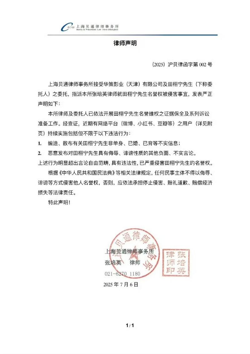 這一切都讓人覺得…如果都是巧合,未免這也太巧了吧!最搞笑的是,田栩寧的經紀公司華策,日前剛發了「單身,無孩子」的聲明👇