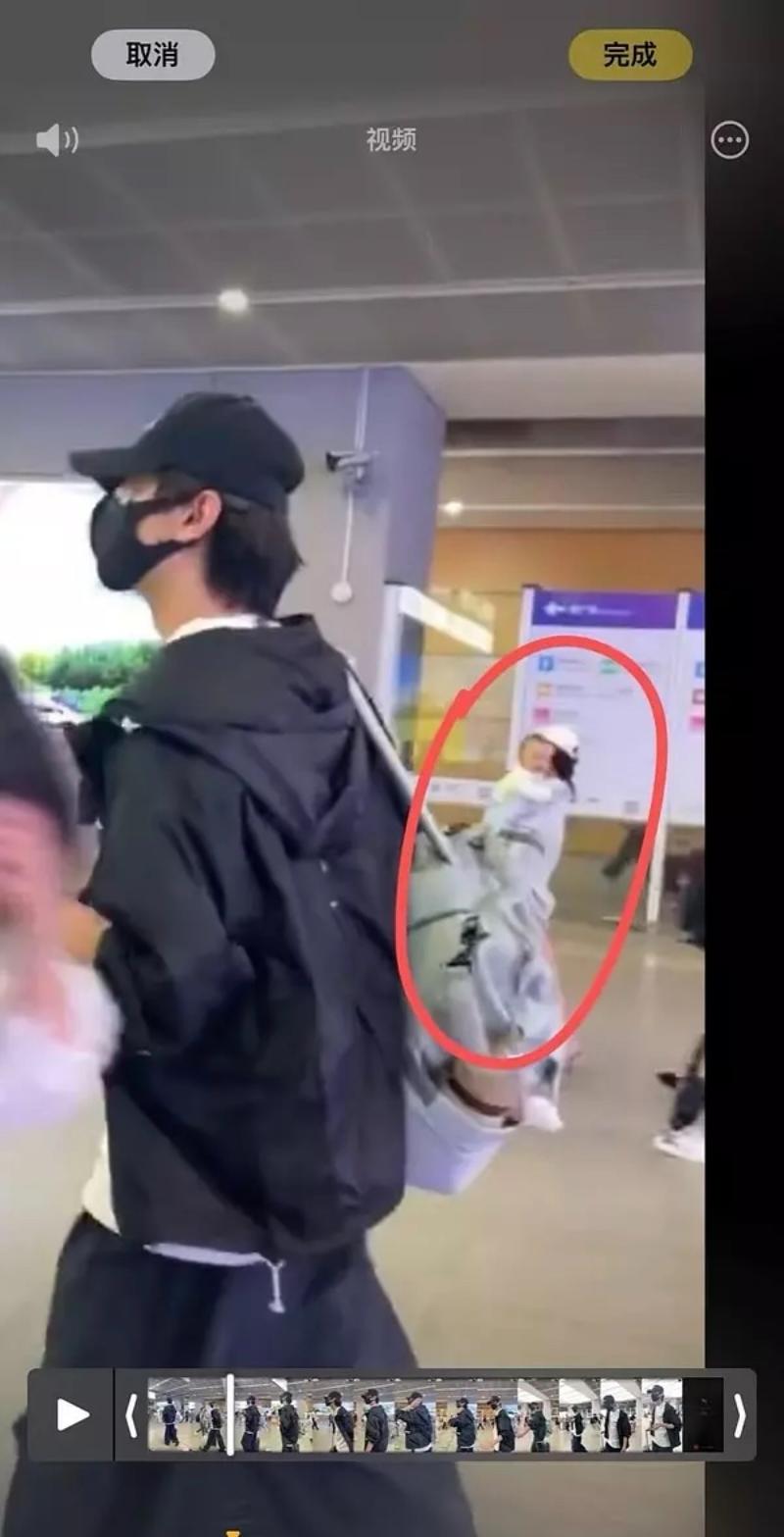 至於另一個大瓜,就是他被拍到背著媽媽包和奶瓶的機場路透,當時同畫面出現的一個抱著寶寶的女生,被指就是若若👇