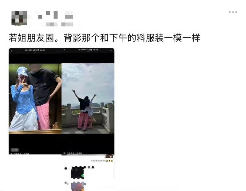 而粉絲闢謠同畫面的抱寶寶女生是路人,但就有網友曝光了緋聞女友「若若」的朋友圈,居然有和畫面中“路人”一樣的裝扮👇