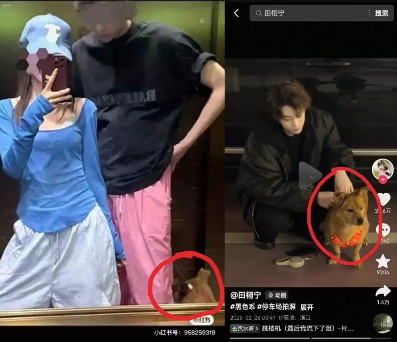 再來,就連照片中的狗,都和田栩寧微博發過的一樣,畢竟折耳狗比較少見👇