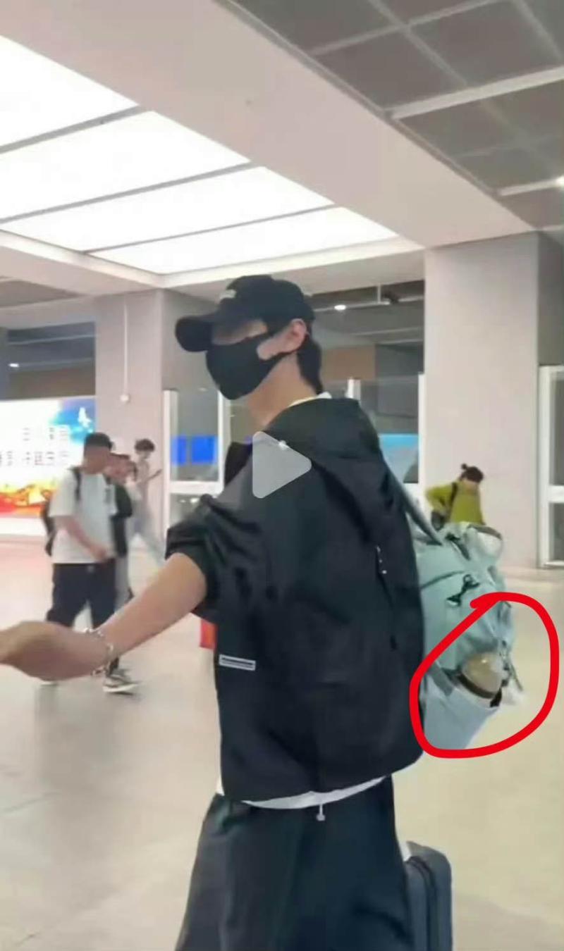 粉絲一開始闢謠背包裡的是運動水壺,結果被奶瓶公司認領了👇