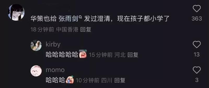 就有網友調侃表示,華策之前也曾幫張雨劍發過「無孩」聲明,結果現在人家孩子都快上小學了👇