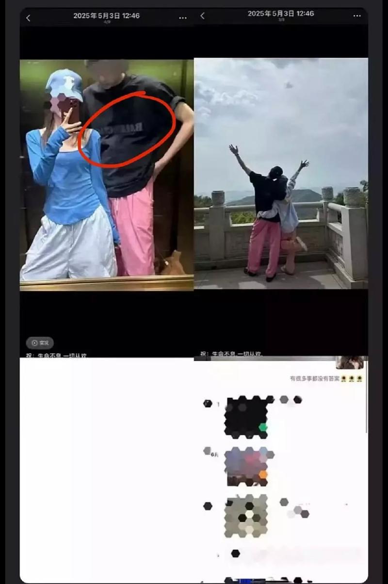 朋友圈另一張臉被打碼的合照也曝光,仔細一扒,照片中的男人穿的衣服,和田栩寧的是同款👇