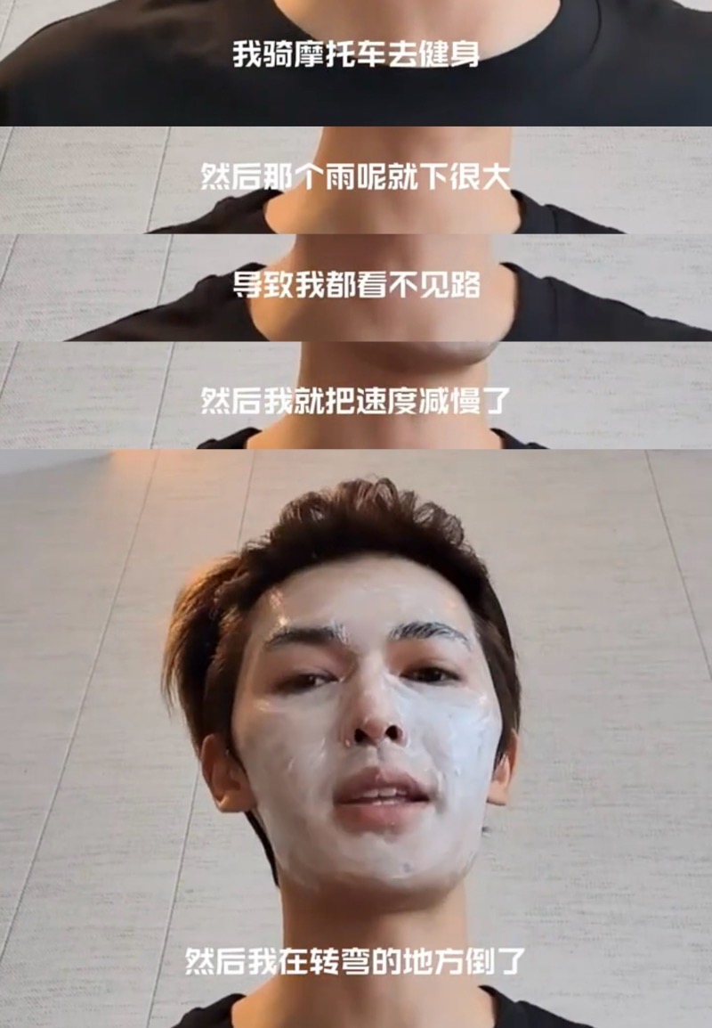最後他騎小機車去運動,結果遇上大雨視線不佳,儘管已經減速了,最終還是因為路滑摔車,他表示當下情緒都上來了,立刻折返再也不出門了!