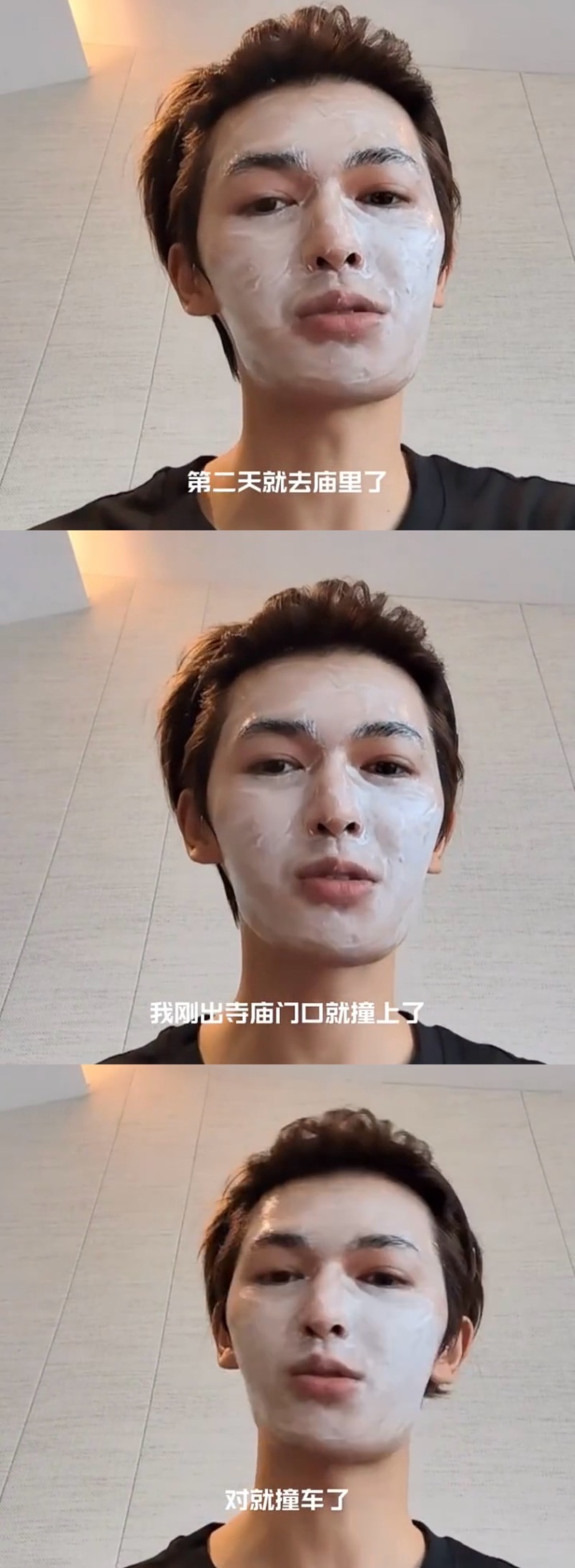 連續發生不好的事,隔天他就去廟裡拜拜祈求平安,沒想到才拜完,就在廟門口遭遇車禍👇