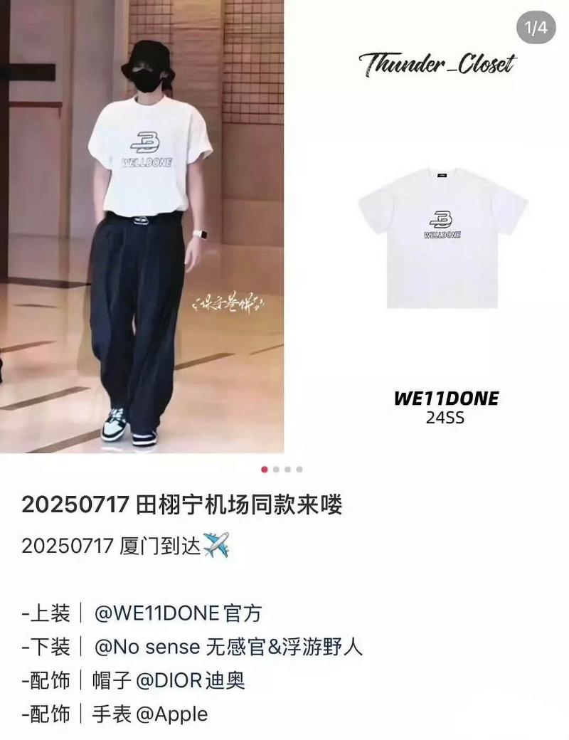 BUT,重點來了~網友發現人家品牌是「We11done」,但是田栩寧身上穿的,卻是「WELLDONE」,也就是說,「11」變成了「LL」👇
