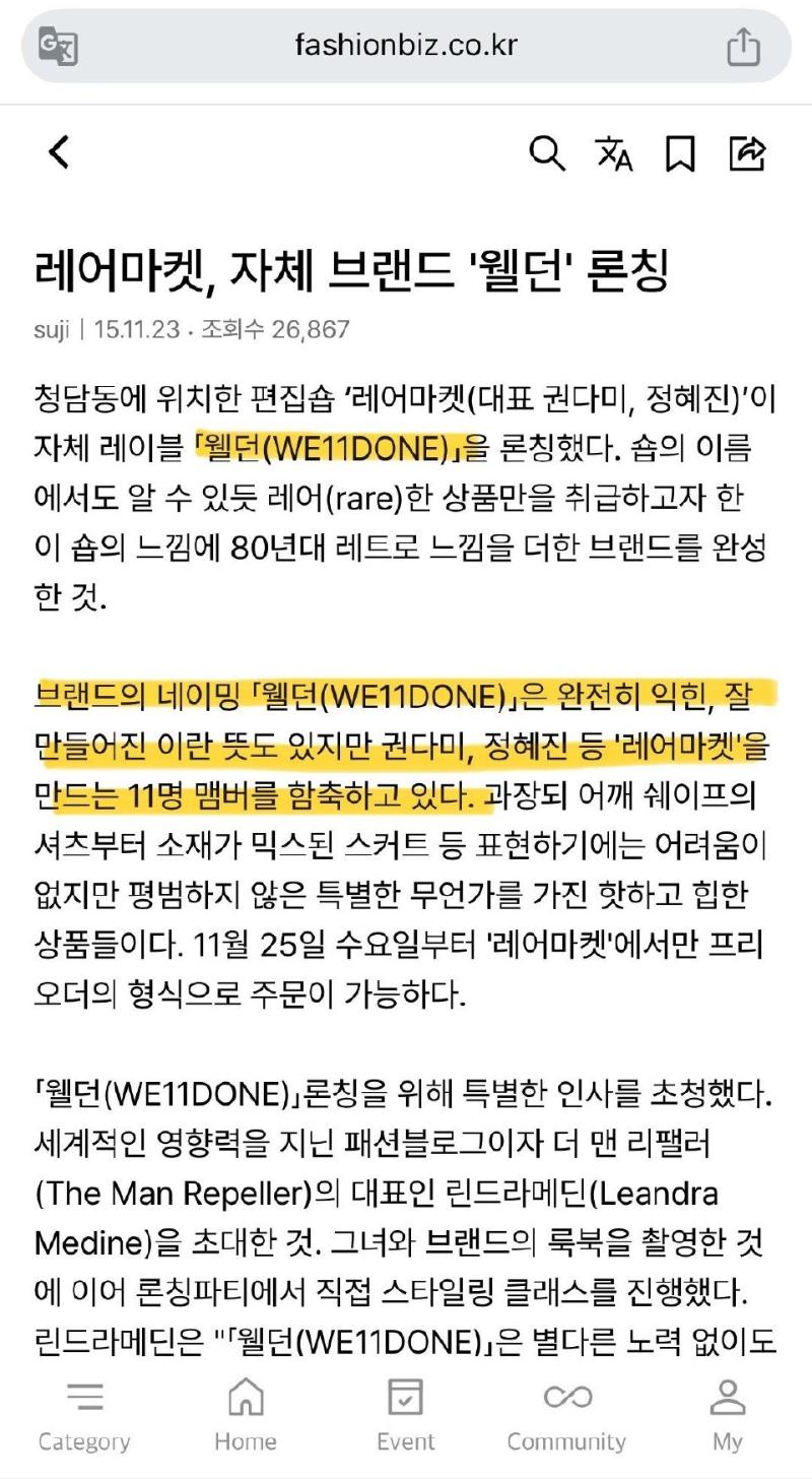 於是就有所謂的曾經的權志龍粉絲出來,幫忙闢謠表示這個品牌之前確實是「WELLDONE」,後來才改成了「WE11DONE」👇