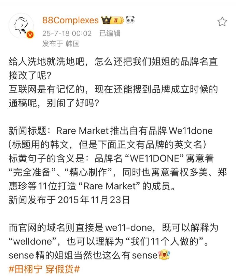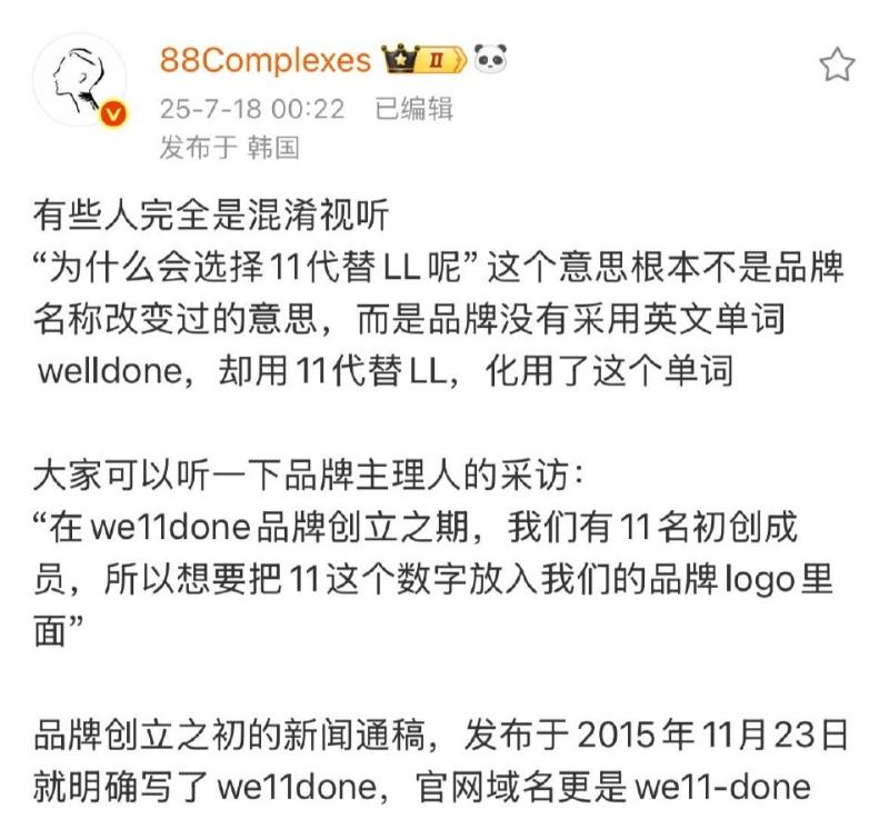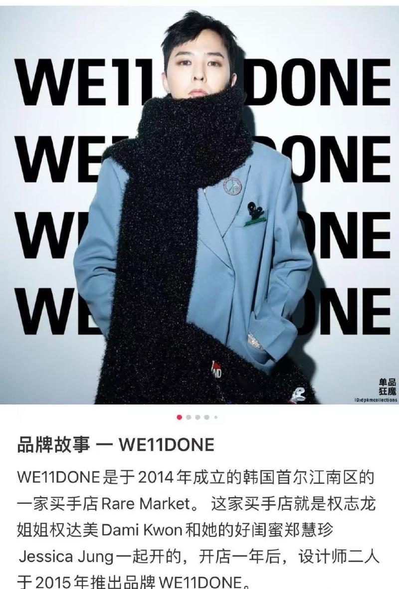 於是就有所謂的曾經的權志龍粉絲出來,幫忙闢謠表示這個品牌之前確實是「WELLDONE」,後來才改成了「WE11DONE」👇
