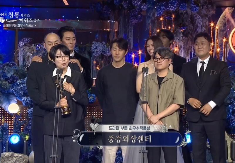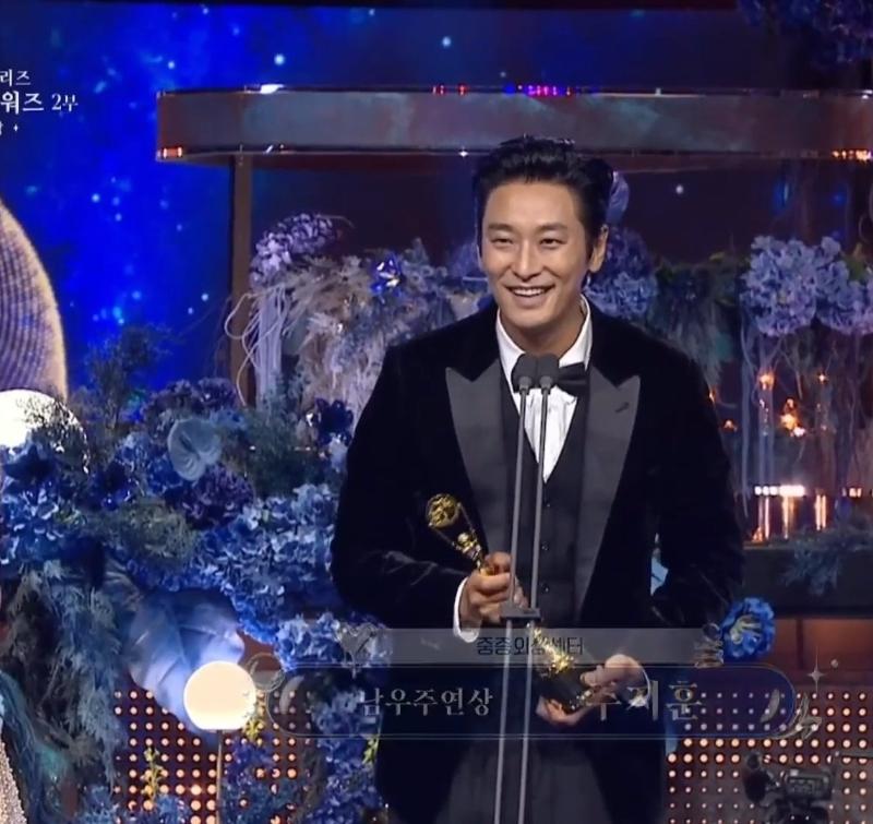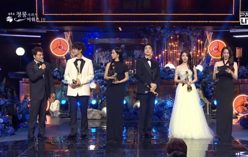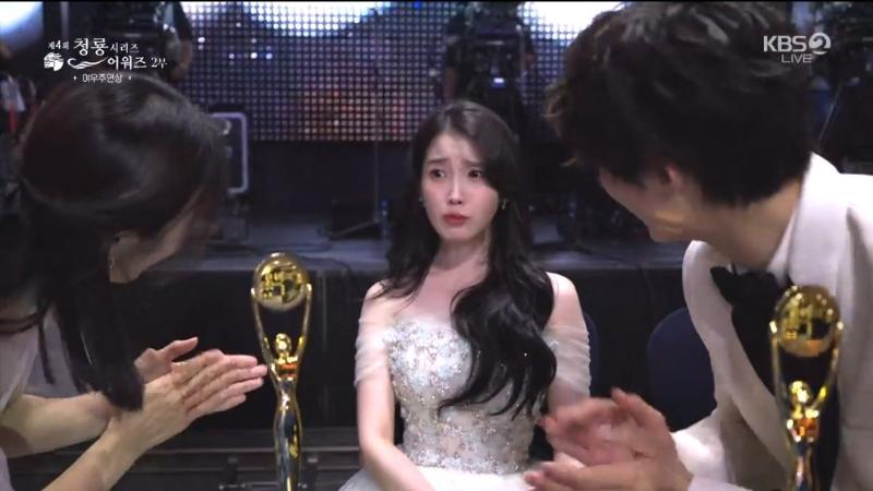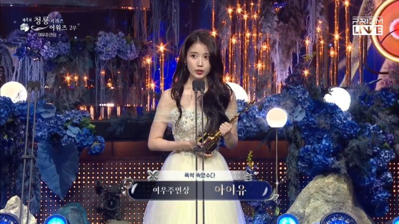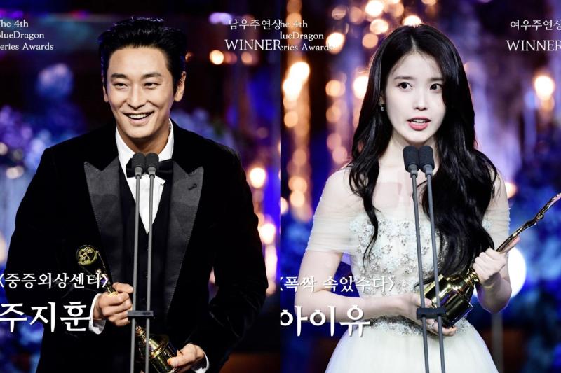 媽啊~終於啊!!!是噠,第四屆青龍系列大獎於仁川Paradise City飯店舉行,而備受矚目的戲劇類最佳男、女演員獎,影帝由朱智勛奪下,影后則終於由IU拿下!